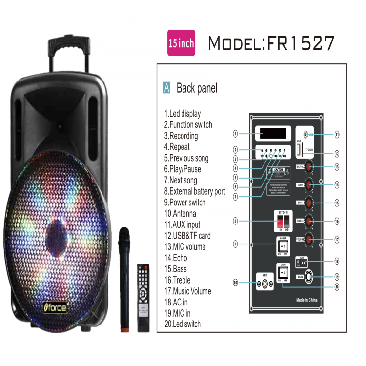 Specification about Force Trolley Speaker (FR1527):