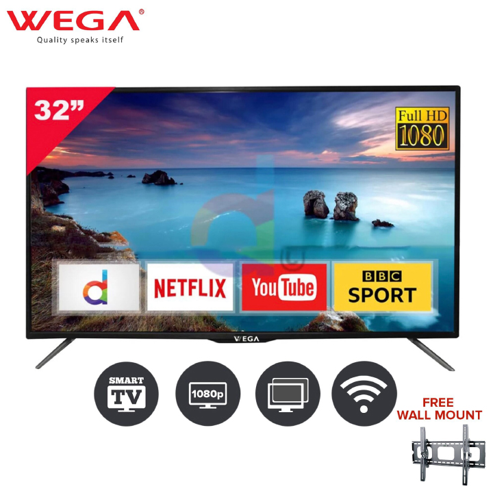 Wega 32 Inch Led Smart Android 9.0 Wifi Frameless Tv, High Sound + Free Wall Mount, 4K & 1080P Supported
