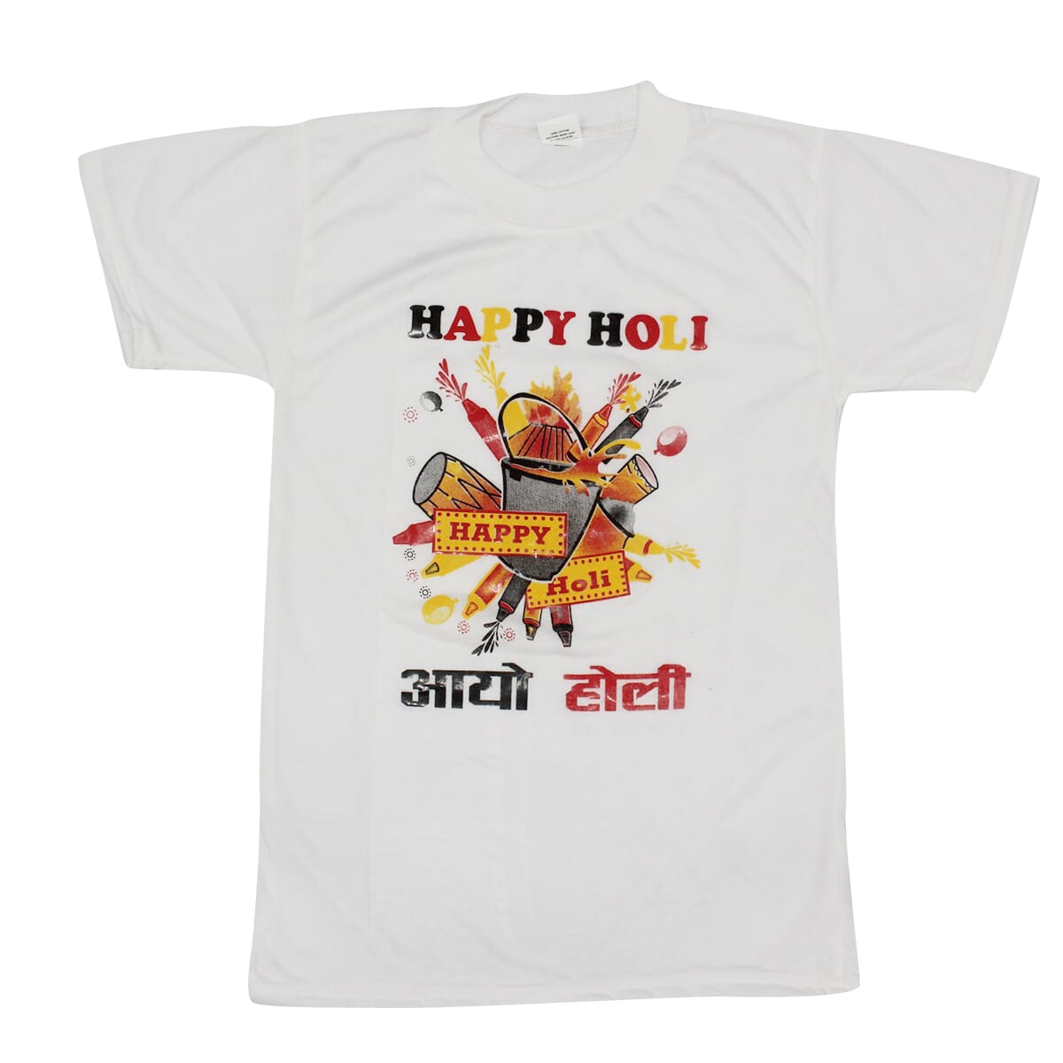 White Happy Holi Printed T-Shirt Kor Kids
